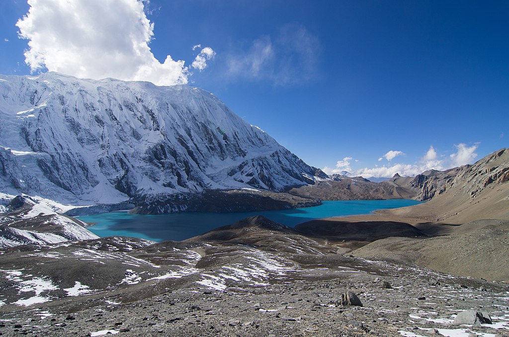 Roman Yahodka, CC BY-SA 4.0, via Wikimedia CommonsTilicho Lake is a lake located in the Manang district of Nepal. It is situated at an altitude of 4,919 metres in the Annapurna range of the Himalayas.