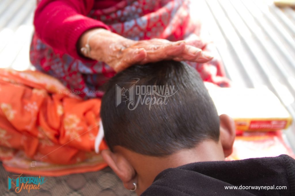 In Newar community, as on most holy days, a married daughter, her husband and children are invited back to the parental home. On Magh Sankranti, the mother blesses all family members with a patting of mustard oil on the head, with a few drops in the ear for a lengthy, fortunate life.