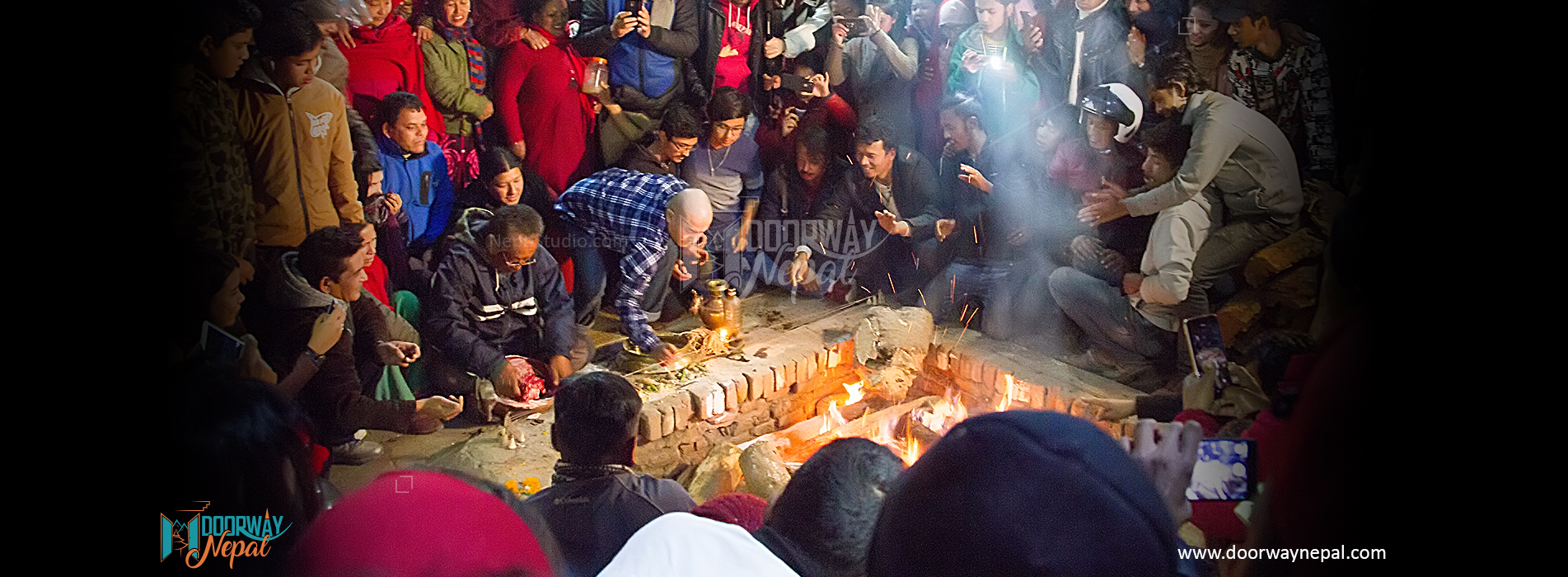 On the first day Sarpayagya Aahuti is performed. It is believed that the creatures that are going to put in fire should be caught from the premises of Indrayani Temple. Due to urbanization and more settlements around the surrounding creatures like grasshopper, snake and sparrow are not used these days. However, fish, head of water buffalo, lungs of water buffalo is offered to the fire for the Mother Goddess. And this offering is done only by Thaku Juju and only he can perform this ritual in the festival.