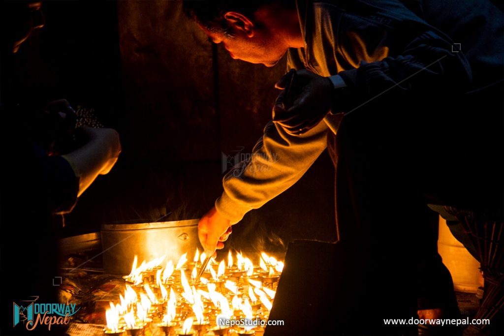 If someone is very sick and in immense pain, his/her family members can visit the Seto Machhendranath and light butter lamps. Seto Machhendranath will look after the sick person — if the time of that person has come, s/he will die not having to suffer more; and if that person has time to live, then s/he will recover soon. Any whimpering child can be calmed down if that child’s face is washed with the water or curd from the Seto Machhendranath’s temple.